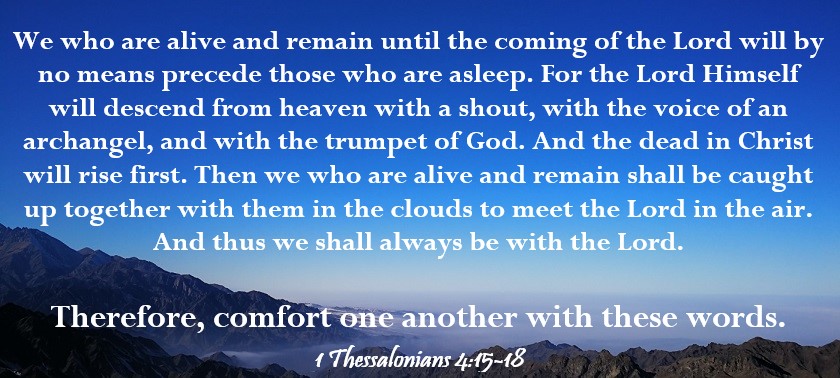 Ruled by chaos and unrest, this world is doomed for destruction. Even Christians fear what’s coming next as sin destroys everything we know as good. But there’s GOOD NEWS for those who know and love Jesus as their Savior. He’s about to call us out of here to join Him in the air before He pours His wrath upon this sinful world. And those believers who’ve already died will join us in the air so we’ll meet Jesus together. What a day of rejoicing this will be! Let’s share this hope and comfort each other with God’s unwavering promise to those who love Him.